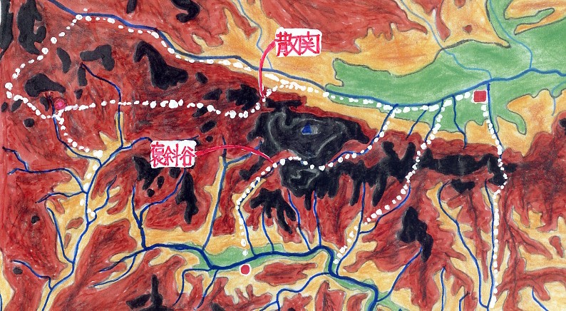 だが其の場合、懸念されるのは、敵からの〔破壊工作〕であった。特に山塊への入口に在る 「斜谷」 が鬼門で、その峡谷に架かる吊り橋を断ち切られると、その修復に途轍も無い時間を喰わされる。無論、警護部隊を常駐させては居たが、油断は出来ぬ。またその周辺の細道で待ち伏せされ、両側の崖上から岩石を落とされたら、甚大な被害を被る危険性が在った。敵にしてみれば僅かな兵力で相手を阻止し得る絶好の場所であった。
