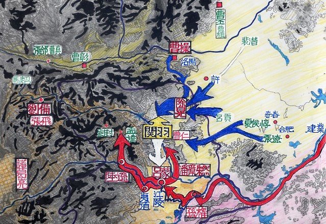 「そうだ。西へ逃げ込もうとする全てのルートを潰し、関羽が蜀本国へ逃亡する事を断念せざるを得無い様な、完璧な阻止ラインを築いてしまわねばならん。詰り、西への撤退を絶対に許さぬ事じゃ!!」